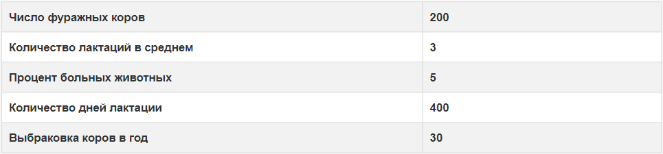 Структура стада рассчитывается из следующих исходных данных: *Данная таблица является лишь общей схемой и подлежит дальнейшему обсуждению со специалистами хозяйства для уточнения деталей.